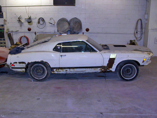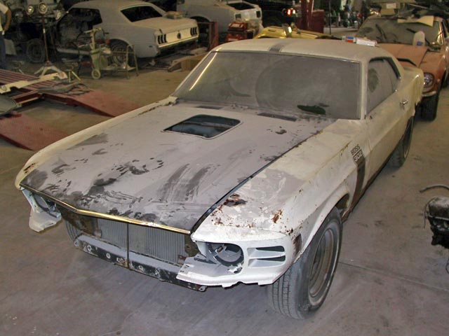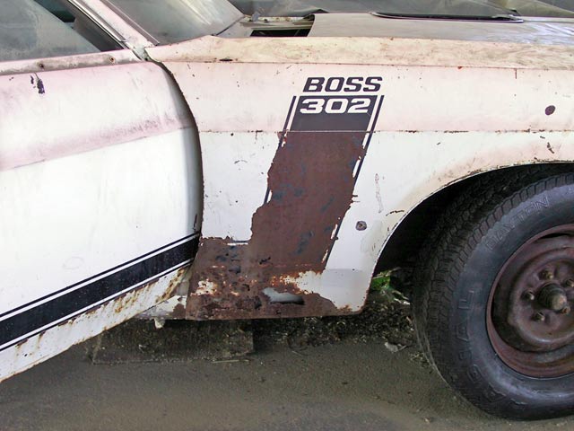 This 1970 Boss 302 looks like it's spent too many winters in Illinois! This car is in need of a lot of rust repair. Howerever this nicely optioned car originally came with White exterior, black interior spoiler, shaker, sport slats, fold-down seat, console, mag 500, and tach.