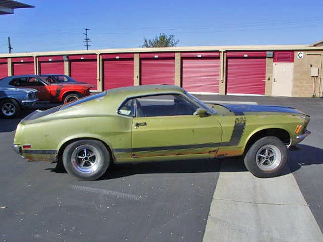 This 1970 Boss 302 was Lime Metallic. It also came with a shaker and a console. This car is in need of some rust repair in the usual places, but overall the car is in decent shape.
