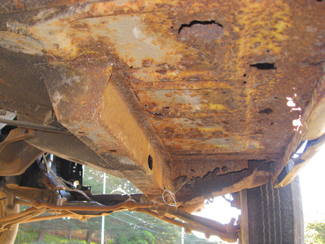 The front frame rails are strong, but the car will need torque boxes and frame rail extensions under new floors on both sides.