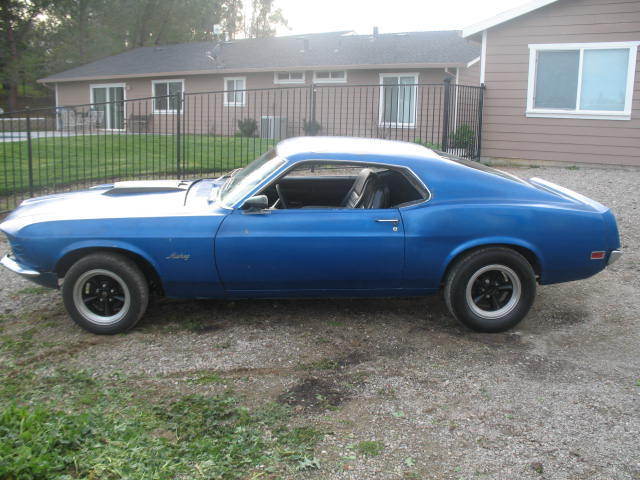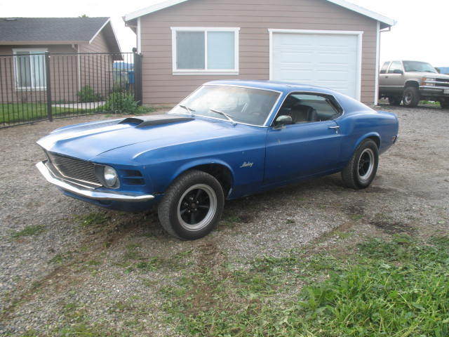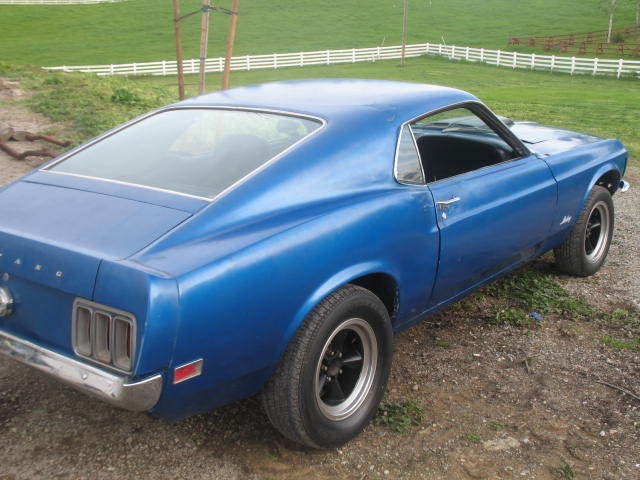 1970 Mustang Fastback. This is an original A/C, 4 speed, H-Code 351, 2 barrel car, 9 inch rear car that needs a little body work, has a cheap paint job on it now, needs interior done as well, motor and tranny are not original to the car, has an excellent running 302 with a strong C 6 tranny with B&M pan, may have a shift kit? shifts strong, 4 speed pedals still in car, motor and engine compartment have been detailed and painted, has Hooker Super Comp Headers and dual Flowmaster exhaust. remote oil filter, Torque Thrust rims. I would replace the right quarter panel due to it being full of bondo by the door, the gap is too big, a new quarter should fix that, floor pans are solid with surface rust on the top, torque boxes and frame rail are nice, needs ball joints badly, its scary to drive it fast! its a 40 year old car and needs alot of work, but it is a Fastback and they are getting hard to find! |