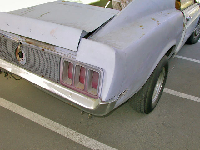 This Mustang has it’s original power steering, power brakes, and original rocker panel moldings as well as honey comb tail light panel – one of the most distinctive features of this model and year. The torque boxes seem to be in good condition as do the frame rails front and rear. A couple of small rust spots, but basically this car is almost ready for paint.