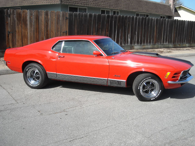 This Mach 1 has been fully restored. Just about every piece and part is new. This car is awesome! 1970 Mach 1 with Power Steering, Power Front Disk Brakes, Tinted Glass. It was painted the original color, Calypso Coral with a Black Clarion Knit /Corinthian interior and Black hood stripe.. It has a 351 Cleveland engine with 2bbl heads, a new Holly Street Avenger carburetor and a rebuilt FMX transmission. The rest of the car is rust free, NO rust holes in trunk area, inner aprons, frame rails, or torque boxes. IT IS A SOLID CAR. The car has the original quarter panels.