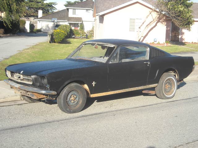 1965 Mustang 2+2 Fastback Project Car. This medium blue fastback is a C code 289 car with a C4 automatic. The car is rough and will need a complete restoration. The car is complete even the original radio is in the dash. It just needs a lot of love and time. It has rust in the quarters and floorpans as well as the lower fenders and doors. The deck lid is also rusty, but the fenders and doors could be patched. The good news is the frame rails and torque boxes are in good shape and will not need replacing.