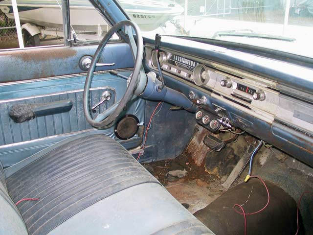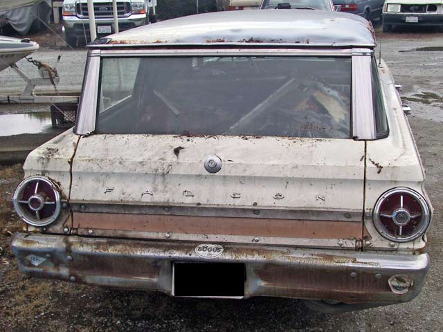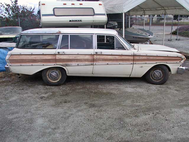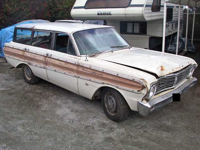 1965 Falcon Stationwagon with running 2bbl 289 engine and automatic transmission. All glass is in good condition. This car needs somebody to really finish it off.