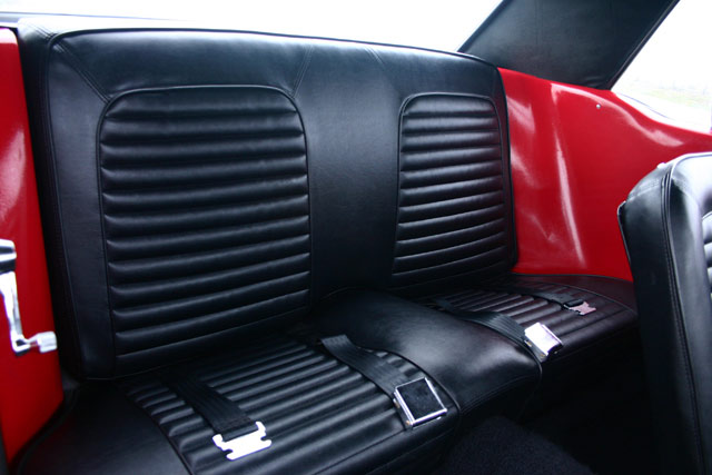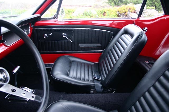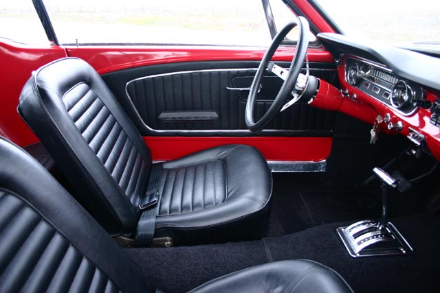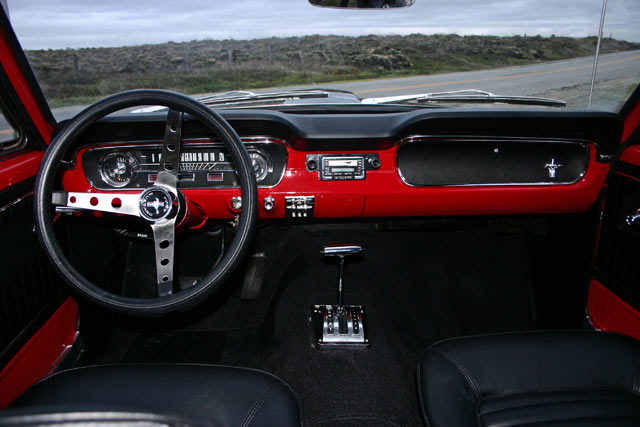 The Shelby scoops look great when accented by the fantastic color combination. The Vermillion Red, Tuxedo Black, and Performance White detailed with red and white pin stripes make this one gorgeous Mustang.
