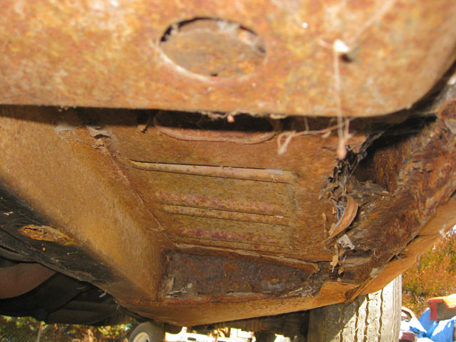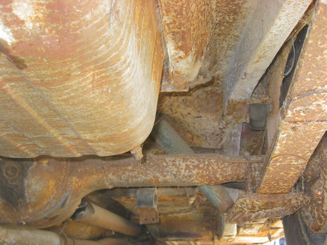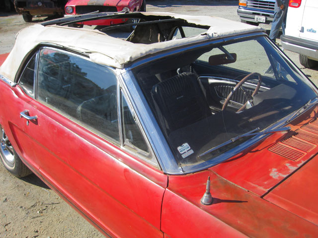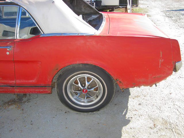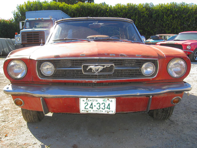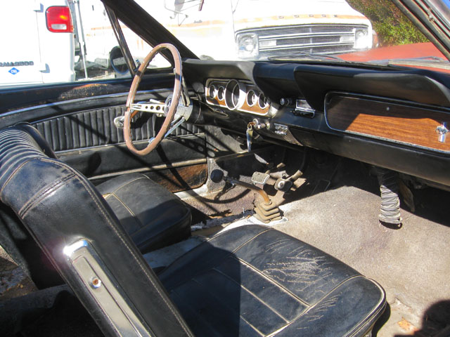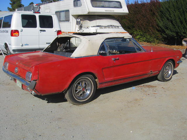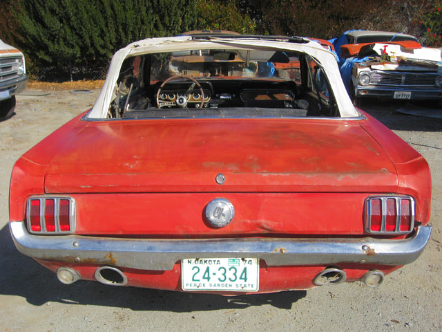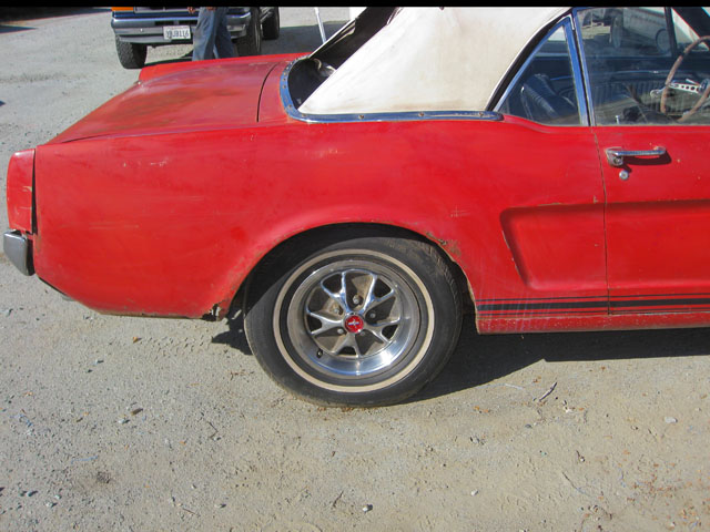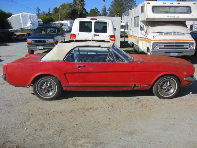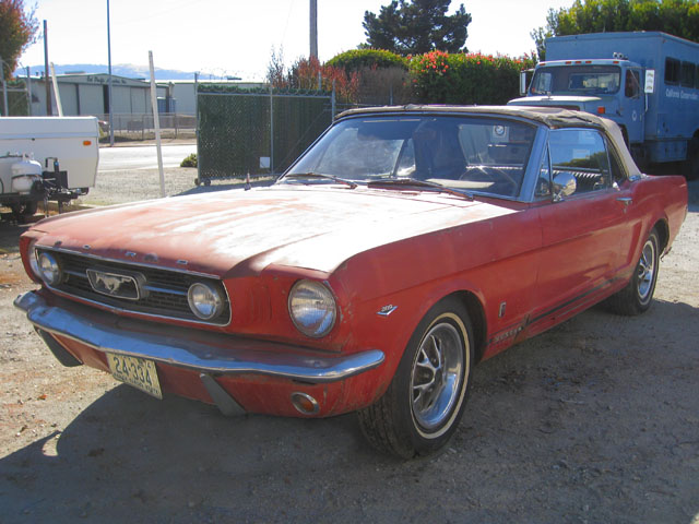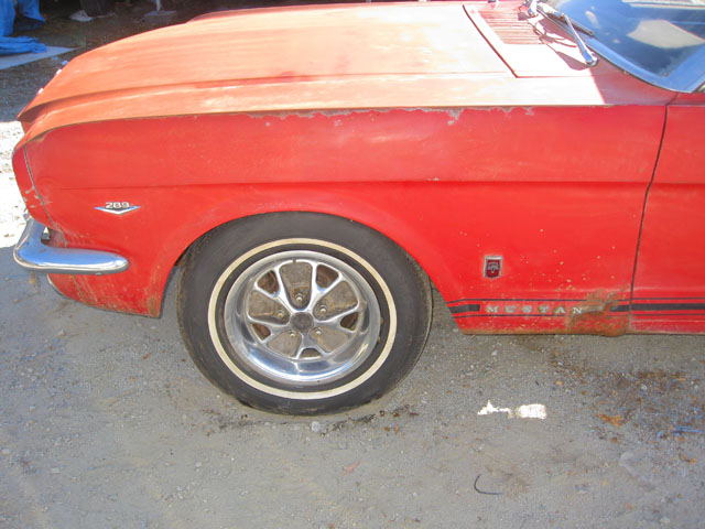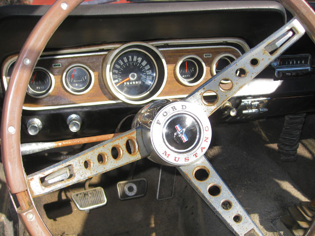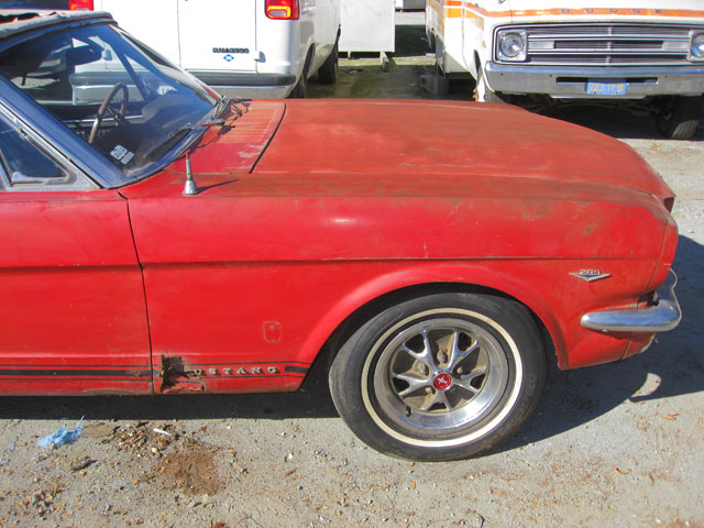 This red beauty looks fairly complete. It has a few minor looking rust spots, but really it just needs some minor repair and a new paint job. The interior and engine also looks to be in good shape. The underside of the car has solid frame rails, but the floor pans may need to be replaced. With a little TLC, and a new paint job you could have yourself a beautiful new classic red Mustang.