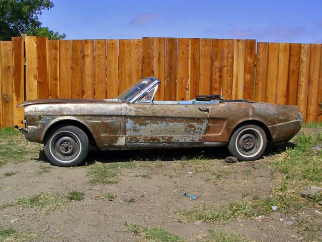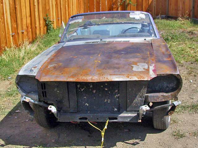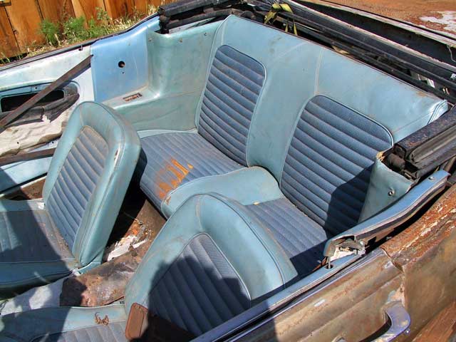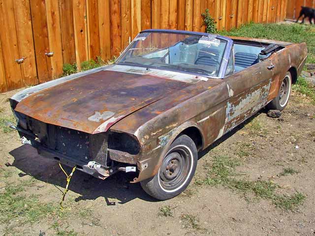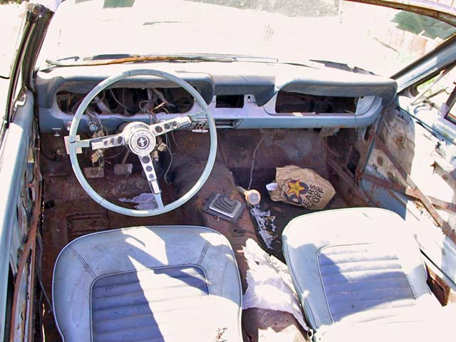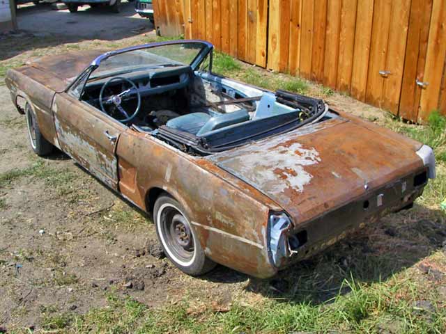 This is a 66 Convertible, that may look rusty but with a new coat of primer it would make a great project car. The body is fairly complete, but is missing detailing such as bumpers and headlights. The interior has seats and a steering wheel but is also missing most of the detailing such as the instrument panel and door panels. This car will need some replacement parts but would be a fun project to work on.