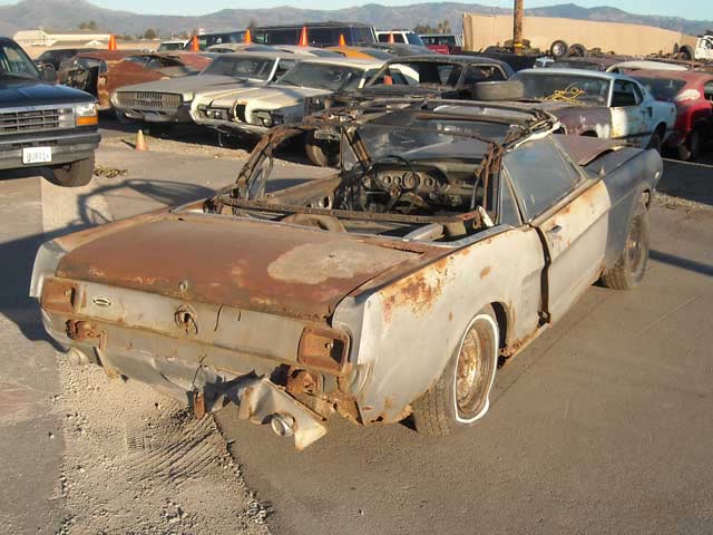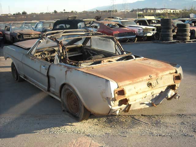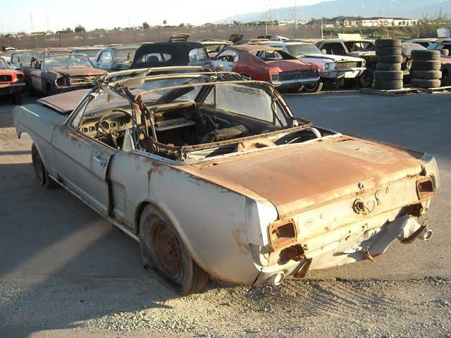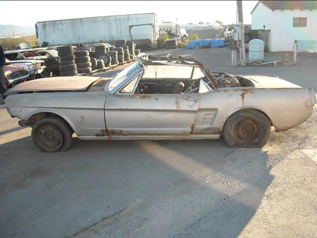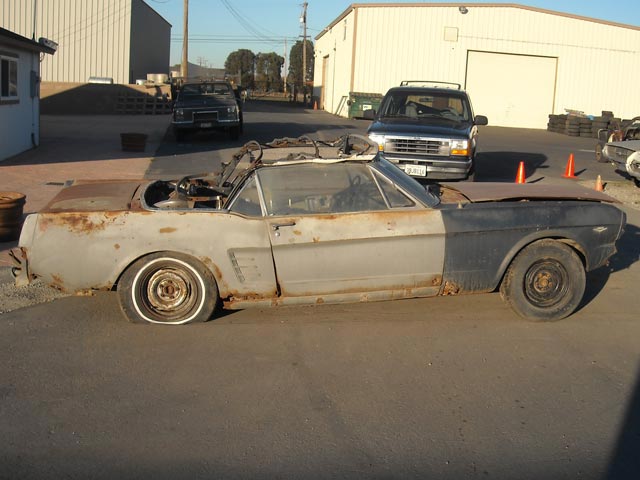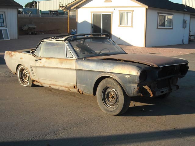 1966 Mustang Convertible Project Car. This medium blue fastback is a C code 289 car with a C4 automatic. The car is rough and will need a complete restoration. It just needs someone that knows how to do some body work. It has rust in the quarters and floorpans as well as the lower fenders and doors. The fenders and doors could be patched. The good news is the frame rails and torque boxes are in fair shape and may not need replacing.
