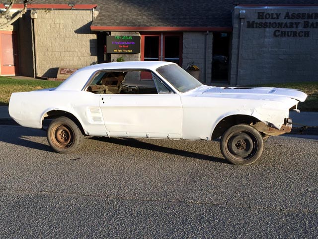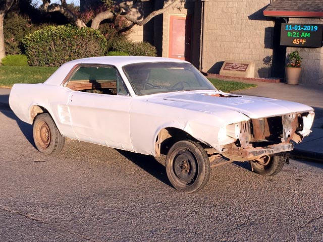 This Mustang will need short floor pans in the front, and some rust repair near the drip rail, plus a new passenger fender. There is no engine in the car, but we have 289 engines and transmissions available separately. If you would prefer a 351 Cleveland engine, we have those as well for additional cost.