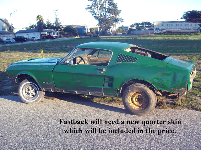 This 1967 Fastback originally came with a 289 2bbl engine and a C4 automatic transmission. It came from the factory with Lime Gold metallic paint and Ivy Gold standard bucket seats. This car also had a console and a sport deck rear seat (fold down seat). Currently this car does not have an engine or transmission and is need of some rust repair. This would be a great car to restore to original condition or turn into a "restomod".