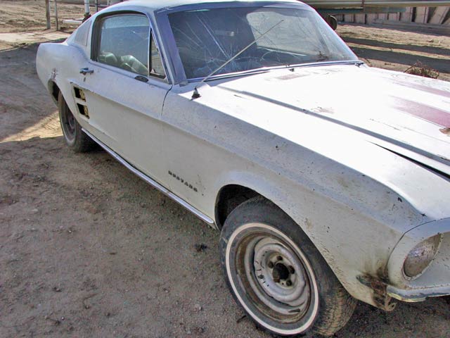 Pretty straight 67 fastback. Needs floors and frame rails. Medium amount of rust repair. Complete. Wheel ling.., 65/66 door, misc. 67 parts.