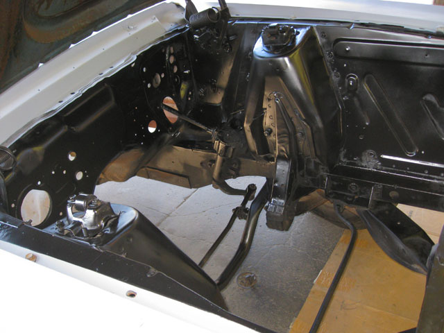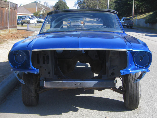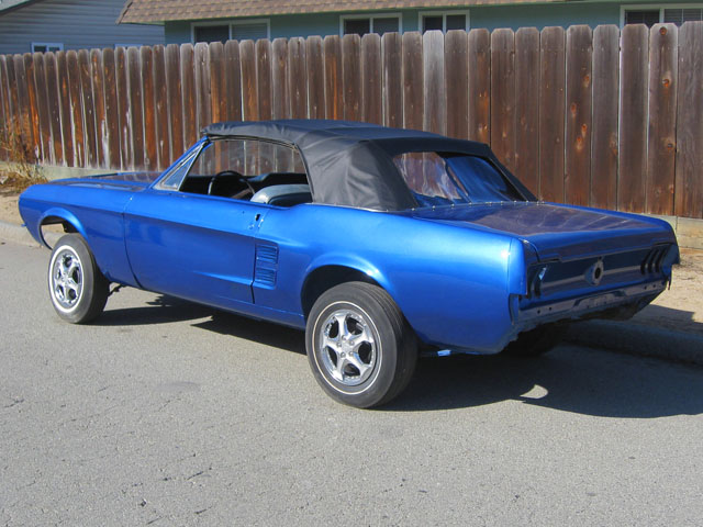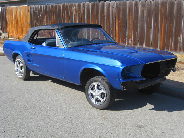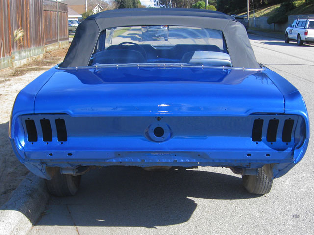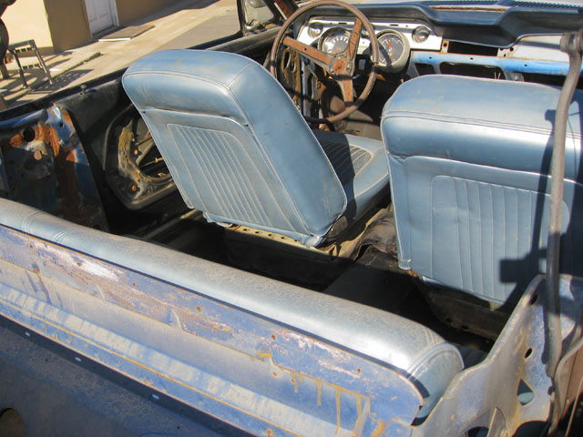 Not nearly as bad as it looks. Very solid frame. Needs fenders, hood, engine, and interior. We have them all.! Originally probably a Britany Blue. This car would look great with a white top and white interior. The correct engine is a 289 "C" code which we have available, plus a C-4 Select Shift Cruise-O_Matic transmission, also available. Add power steering and power front disk brakes and this Mustang would be a beauty. Fully restored, this car is probably worth at least $28,000. |