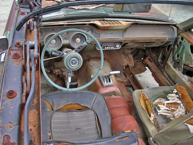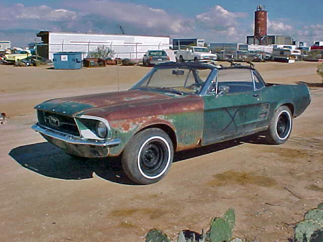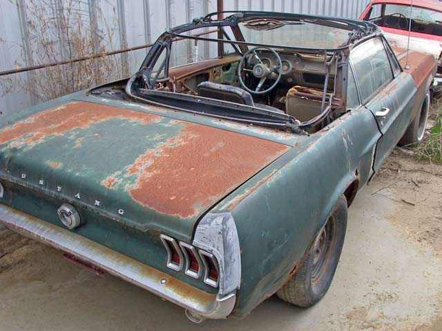 A very complete 67 Convertible that was running when purchased, but it will need some rust repair. Probably floor pans and lower rear quarter repairl. Originally painted Dark Moss Green with a Manual Black Top and Glass Backlite. Equiped with a C-4 Select Shift Cruise-O-Matic Transmission, AM Radio, and Ivy Gold Standard Bucket Seats. Fully restored, this car would easily sell for $26,000.