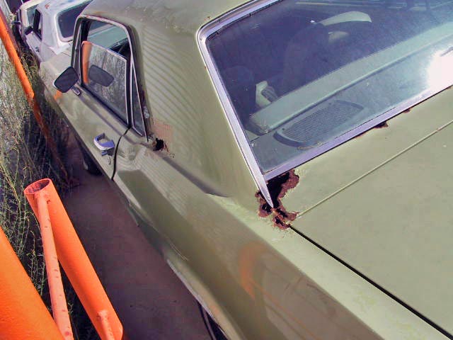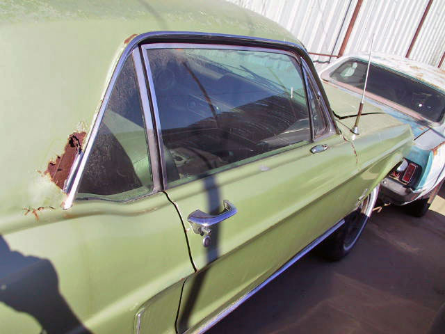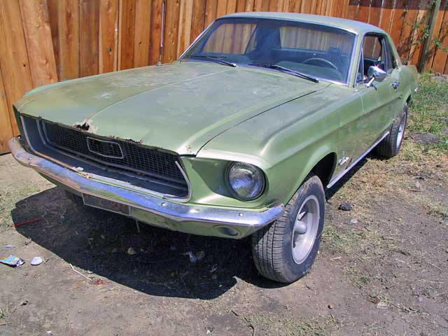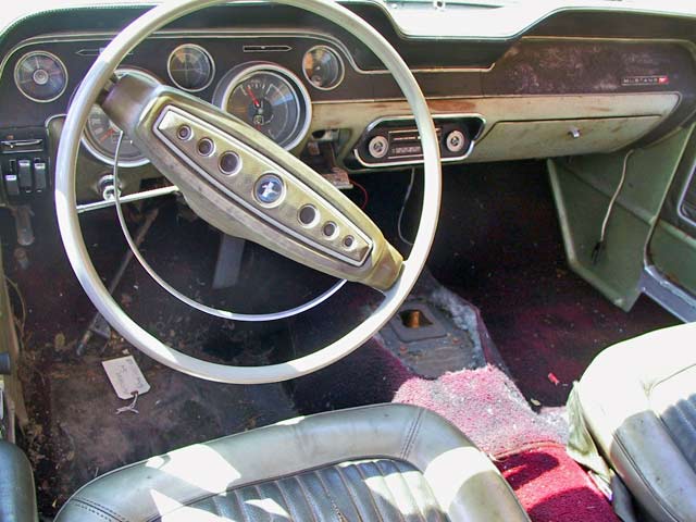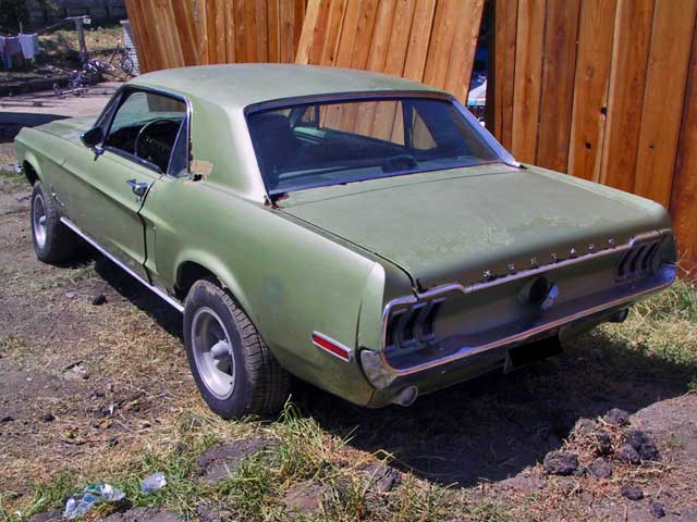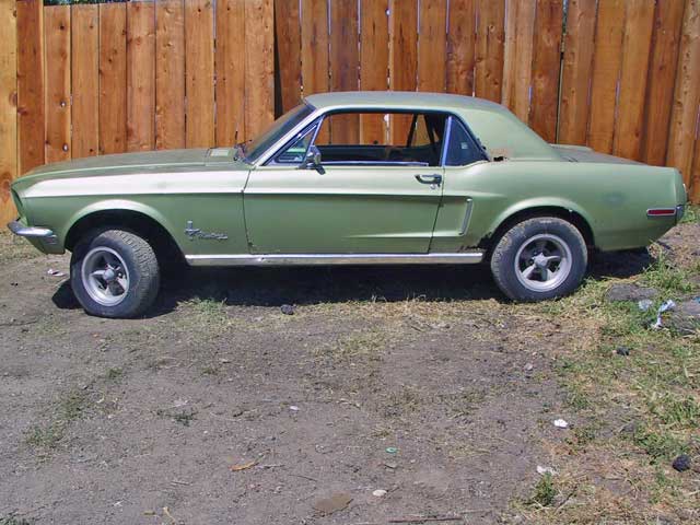 This 1968 Mustang Coupe is fairly complete. It is missing its original engine and transmission. This car has some rust around the rear window and on the hood. The floor pans and underside of the car are in good condition. This car originally came with a 289 2bbl engine. At this point it could be upgraded to the engine of your dreams!