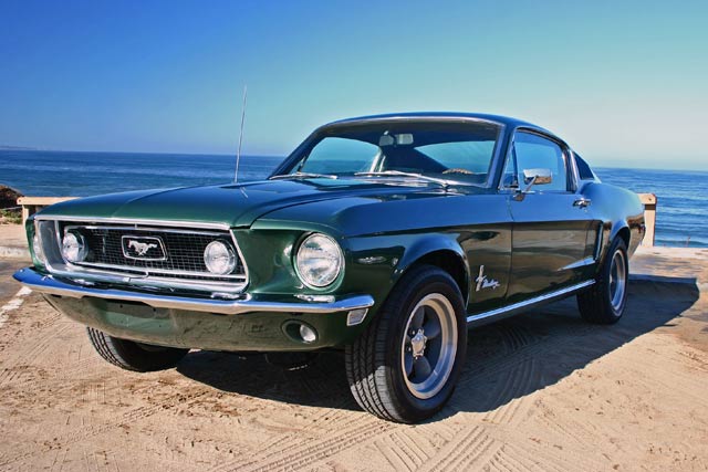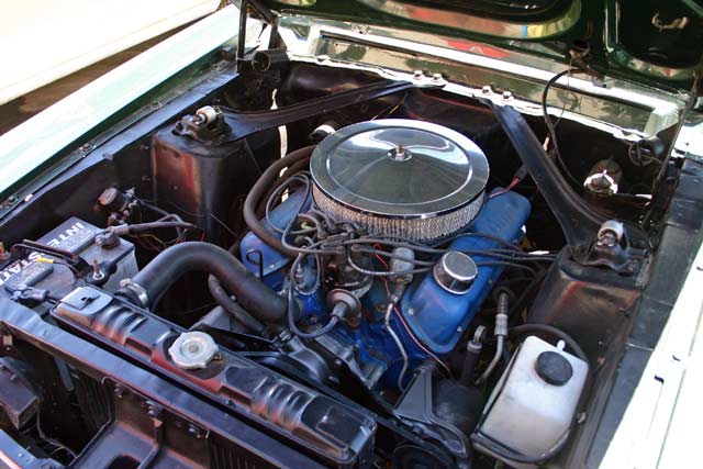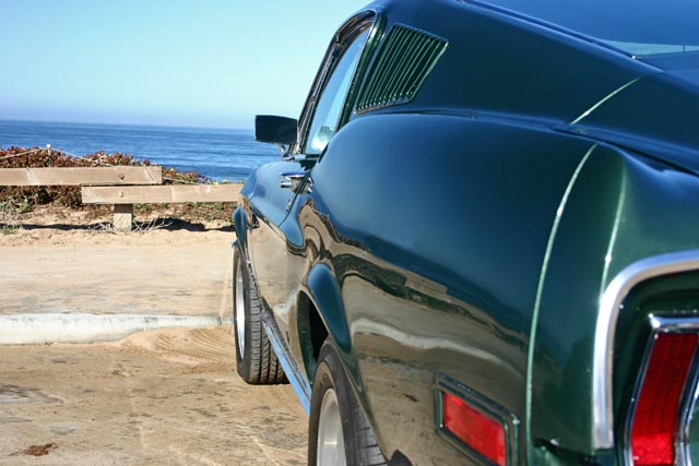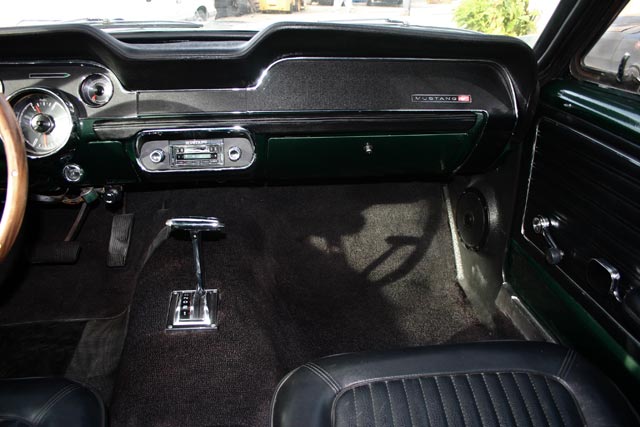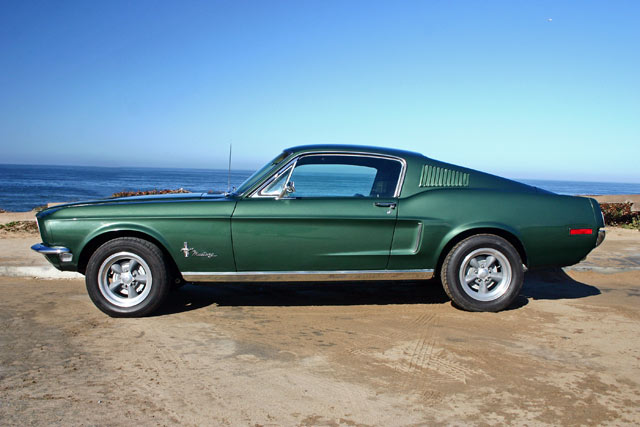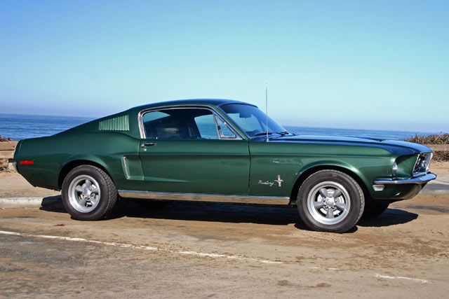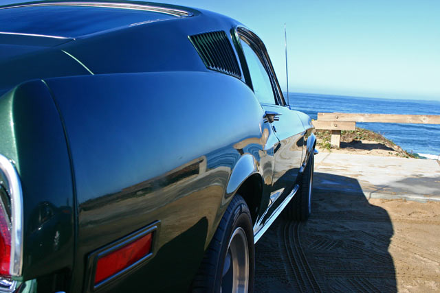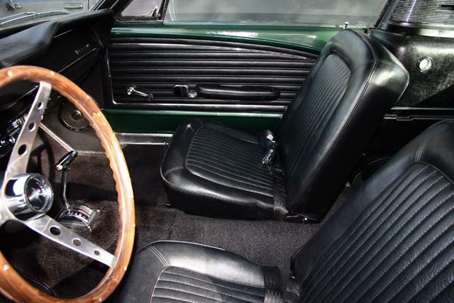 This car is a "Bullitt" replica, and the color is Ford Highland Green Metallic just like the car in the movie "Bullitt". "Bullitt" was a famous 1968 movie staring Steve McQueen and featuring one of the wildest car chases you will ever see. The floor's, trunk and frame structure are solid as well as original. Everything has been restored or replaced from the ground up.
