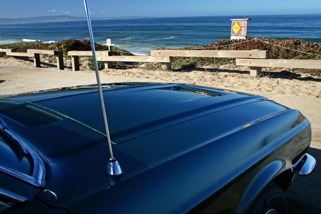 It features turn signals, GT hood , GT fog lights, new weather stripping, AM/FM Radio, new stainless trim, tinted glass, power steering, New Tires - Michelin Pilots: (front) 205-60R15, (rear) 215-60R15, New Rims - American Racing Torq Thrust D rims. All New, Black Upholstery all interior redone, dash and door panels, new headliner seats reupholstered, new steering wheel, and new carpet. It also has a rebuilt 302 with a 4 bbl Holly Street Avenger carburetor and original 4bbl intake. The C-4 Select Shift Cruise-O-Matic automatic transmission was rebuilt. It sounds great with the new Flowmaster exhaust system and tri-Y headers. The GT rear valence with exhaust cutouts was also added. This Mustang even has its original California "Black" License Plates |