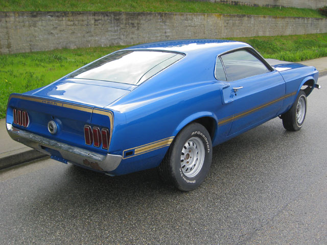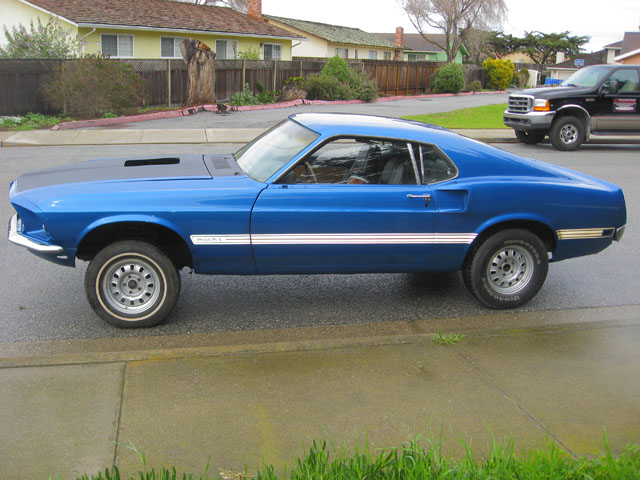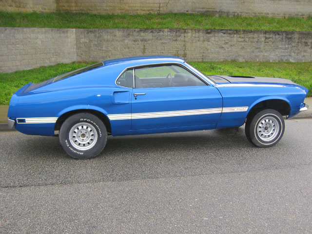 It might be hard to find another 69 428 Cobra Jet Shaker Mach 1 with more original options. Immersion Block Heater, C-6 Cruise-O-Matic Transmission, 3.50 optional axle ratio, traction lok differential, visibility group, Black Clarion Knit/Vinyl High Back Bucket Seats, Sport Deck Rear Seat, Power Front Disk Brakes, Power Steering, Tilt Away Steering Wheel, Am Radio, Tinted Glass Complete, Deluxe Belts/Warning Light. With a car this highly optioned, you might want to consider adding Air Conditioning, and Competition Suspension just to complete the package. Painted back to its original Acapulco Blue with Black out Hood Treatment, this would be an awesome Mach 1. All restored, this Mach 1 would easily bring over $40,000. |