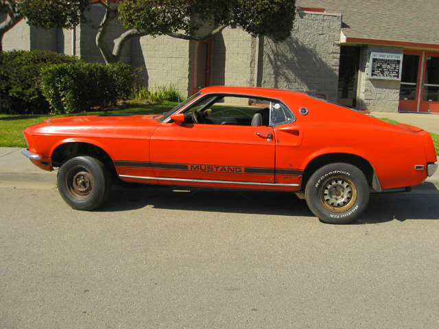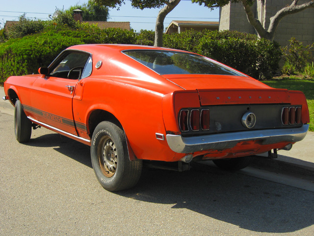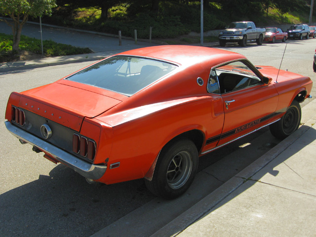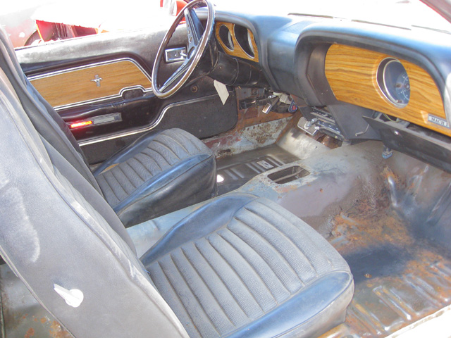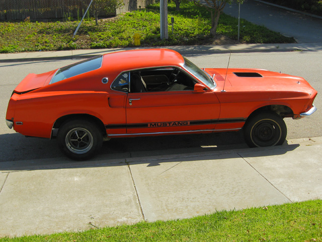 The car is in excellent shape but needs restoration. The original 428 engine disassembled is inside the car. Very Complete car. Straight body. Hood is good as are the fenders and doors. Very little rust, but it does look like around the rear wheels will need some work, and the floor pans as well, but the frame rails look strong as do the torques boxes. No tranny but we have a C-6 available.. Power front disk brakes, and power steering are still on the car. All restored, this Mach 1 would easily bring over $40,000. |