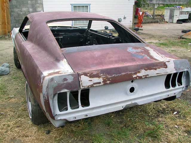 Want to start with a sound car not needing much rust repair? Then, this is right car. What a gorgeous 69 428 Cobra Jet Shaker Mach 1 it will be, when painted its original Royal Maroon paint with Blackout Hood treatment. Plus it originally came with lots of options. C-6 Cruise-O-Matic Transmission, Black Clarion Knit/Vinyl High Back Bucket Seats, Sport Deck Rear Seat, Power Front Disk Brakes, Power Steering, AM Radio, and most importantly, Air Conditioning.