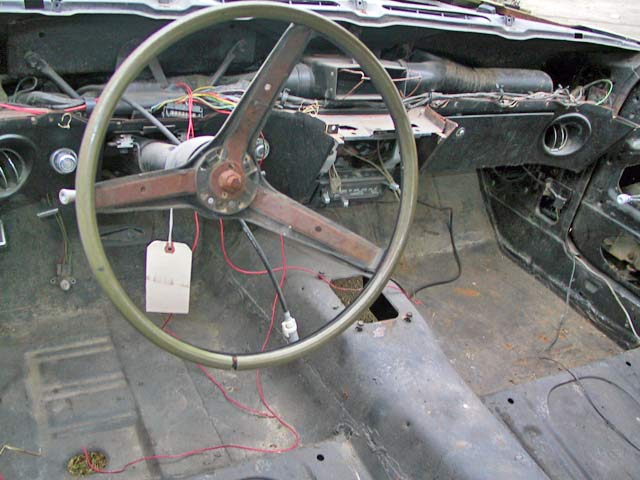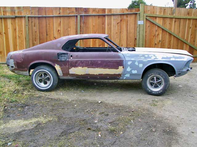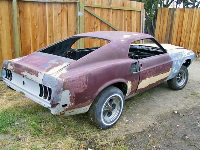 The car is in excellent shape but needs restoration. A 428 engine is available if you need the right engine for the car. Very Complete car. Straight body. The rest of the car is rust free, NO rust holes in trunk area, inner aprons, frame rails, or torque boxes. IT IS A SOLID CAR. The car has the original quarter panels. Doors and fenders also look original. Seats will be needed but are available. Needs ft & rear valances - Has the Rim Blow steering wheel [good for a core] No tranny but we have a C-6 available.. Power front disk brakes, and power steering are still on the car, but it will need a new dash and instrument panel. All restored, this Mach 1 would easily bring over $40,000. |