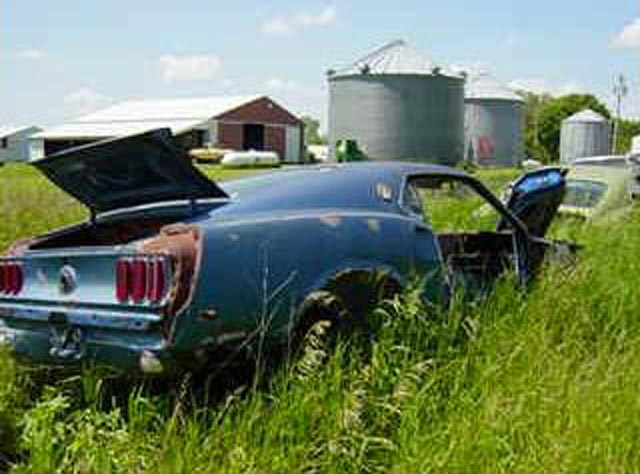 Mt Everest is disguise. This “R” Code (Shaker Hood Scoop) Mach 1,with its 4 speed manual transmission, and 3.50 axle ratio, plus its 4 bbl 428 big block engine is the Mt Everest of muscle cars. It just needs to rediscovered, which in this case will take some serious hard work. When properly restored, the achievement will be worth the effort. Easily worth $37,000 to $43,000 when restored. Painted back to its original Acapulco Blue paint with Blackout Hood treatment, it will as magnificent as Everest is tall. Talk about fun to drive. The close ration 4 speed top loader transmission plus competition suspension will handle the extra horses that the 428 Cobra Jet engine delivers. White Clarion Knit/Vinyl High Back Bucket Seats, Sport Deck Rear Seat, Power Front Disk Brakes, Interior Décor Group, and AM/FM Radio make this Mach 1 as beautiful inside as it will be on the outside. You might want to add disk brakes all around instead of just in the front, if you are going to race the car.