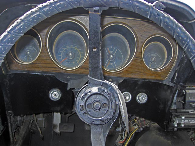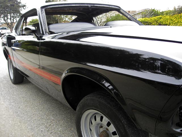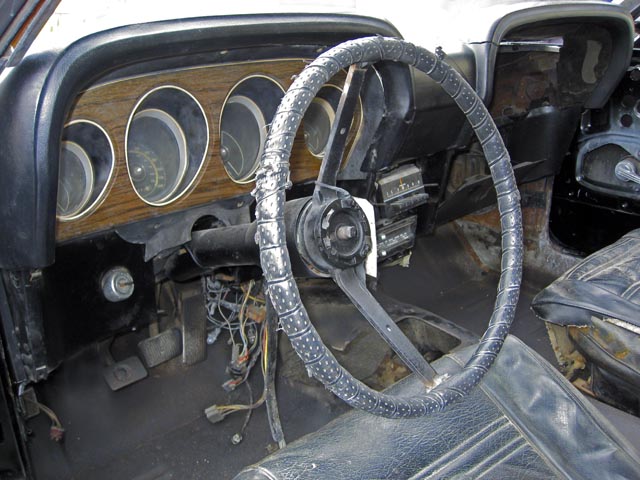 Has the Rim Blow steering wheel [good for a core]. Trimmed out and restored, this Black on Black Mach 1 Stalion would be a beautiful horse to drive. |