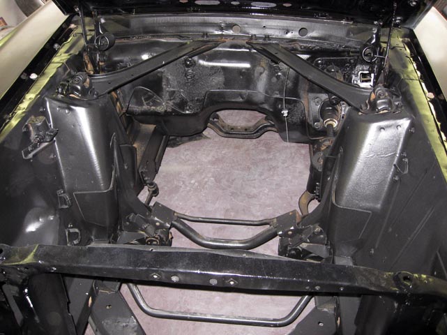 The original 428 engine and C-6 automatic transmission are missing but we have both available on request. There is rust work needed around the rear quarters and floor pans to make this Black Stalion a show stopper, but the hood and front fenders look good, as does the deck lid Plan on the normal interior redo, engine and transmission rebuild, etc.. The car has the original quarter panels. Doors and fenders also look original.