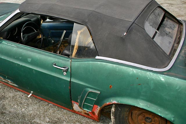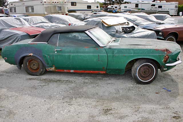 This is a rusty 1969 Mustang Convertible. The floor pans and frame rails are rusty (as they are on most Mustang Convertibles). However this is a pretty complete car ready for some rust repair!