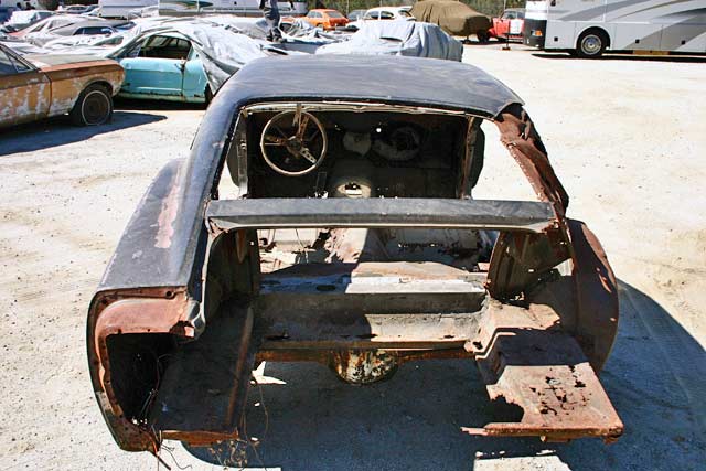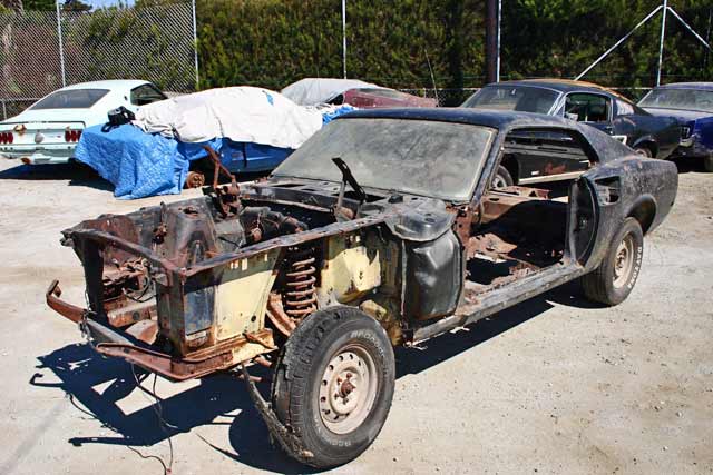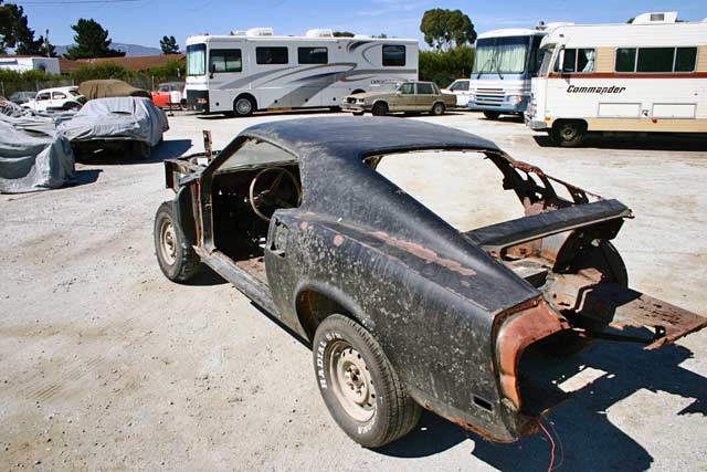 The original 428 engine and C-6 automatic transmission are missing but we have both available on request. There is a lot of rust work needed including obviously a passenger rear quarter to be installed.(we have a donor quarter) as well as floor pans, etc. to make this Black Beauty a show stopper. We have the needed hood and front fenders, as well as a deck lid Plan on a complete interior redo from scratch. We have the needed 428 Cobra Jet engine and close ratio transmission if you don’t have access to those important pieces. Completely restored, this White on Black Mach 1 would be a beautiful horse to drive. |