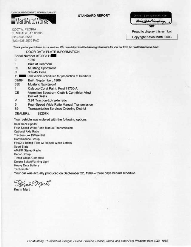 Boss 302 VIN# 0F02G111xxx