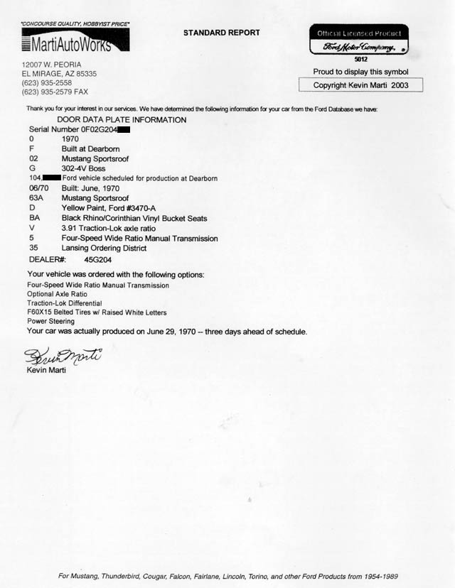 Boss 302 VIN# 0F02G204xxx