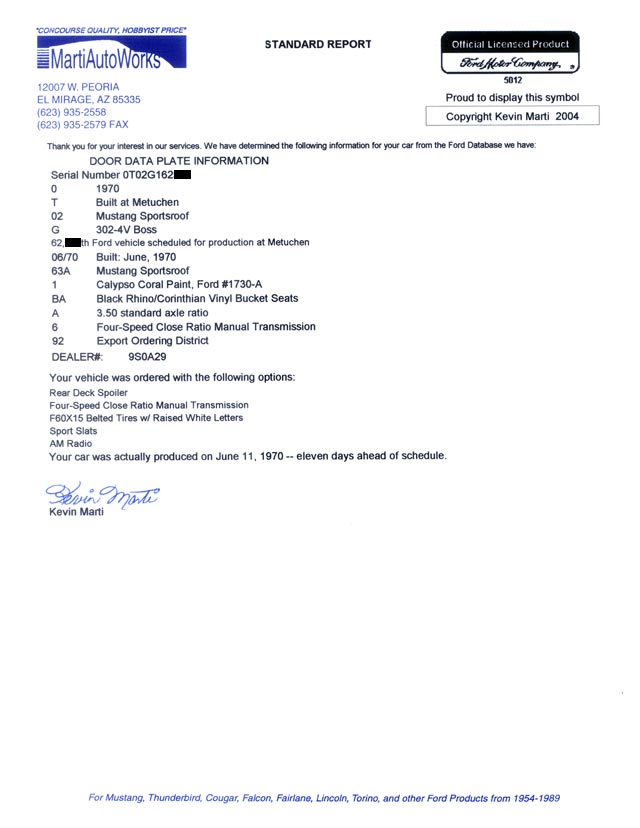 Boss 302 VIN# 0T02G162xxx