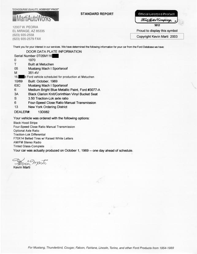 Mach 1 VIN# 0T05M116xxx