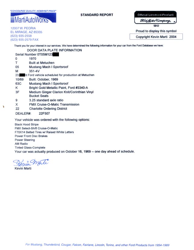 Mach 1 VIN# 0T05M123xxx