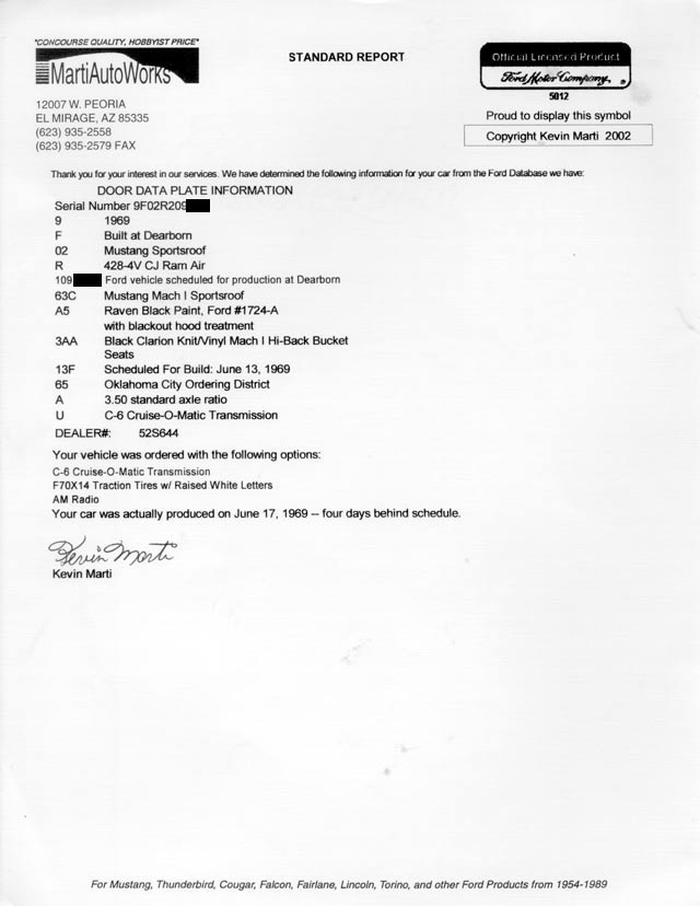 Mach 1 Cobra Jet VIN# 9F02R209xxx