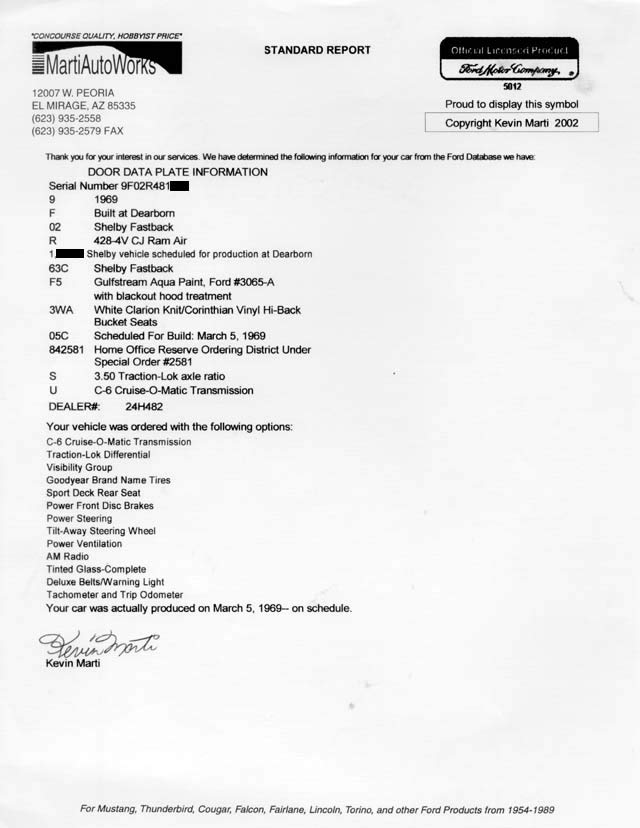 Shelby GT 500 VIN# 9F02R481xxx