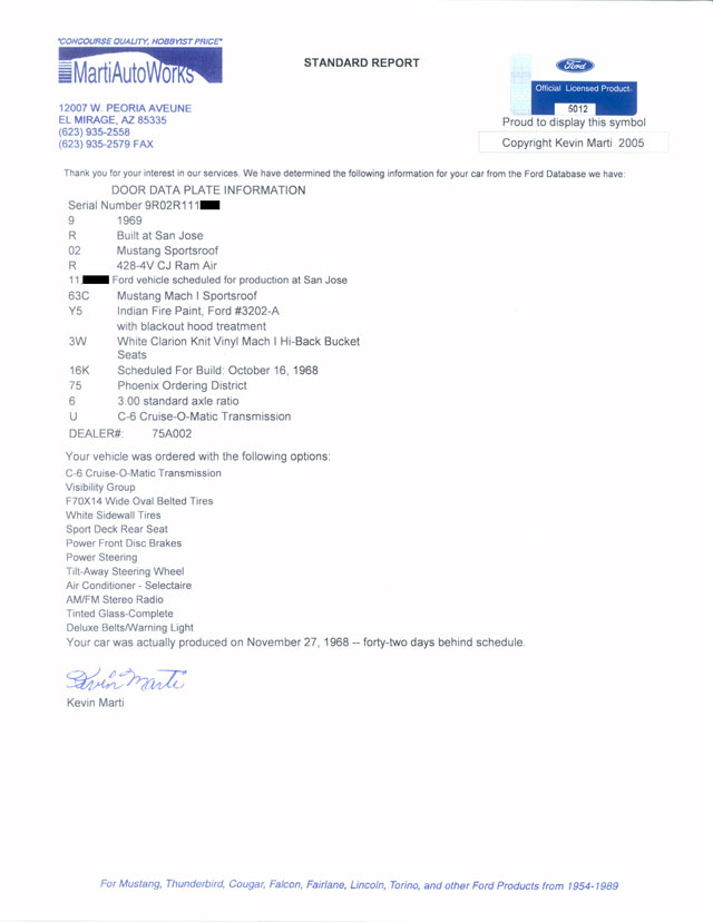 Mach 1 Cobra Jet VIN# 9R02R111xxx