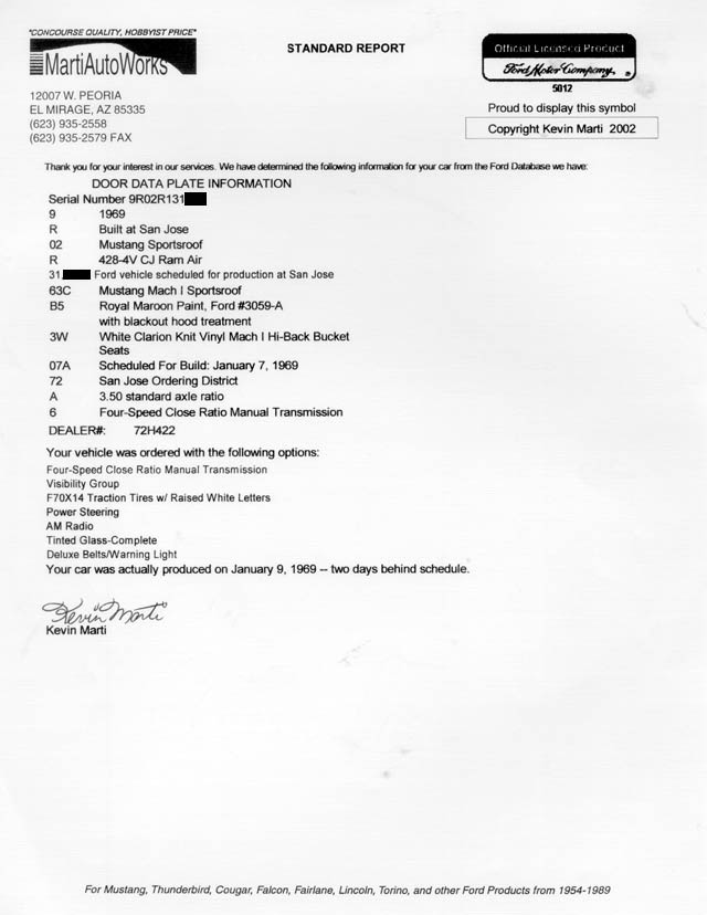 Mach 1 Cobra Jet VIN# 9R02R131xxx