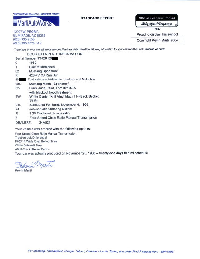 Mach 1 Cobra Jet VIN# 9T02R128xxx