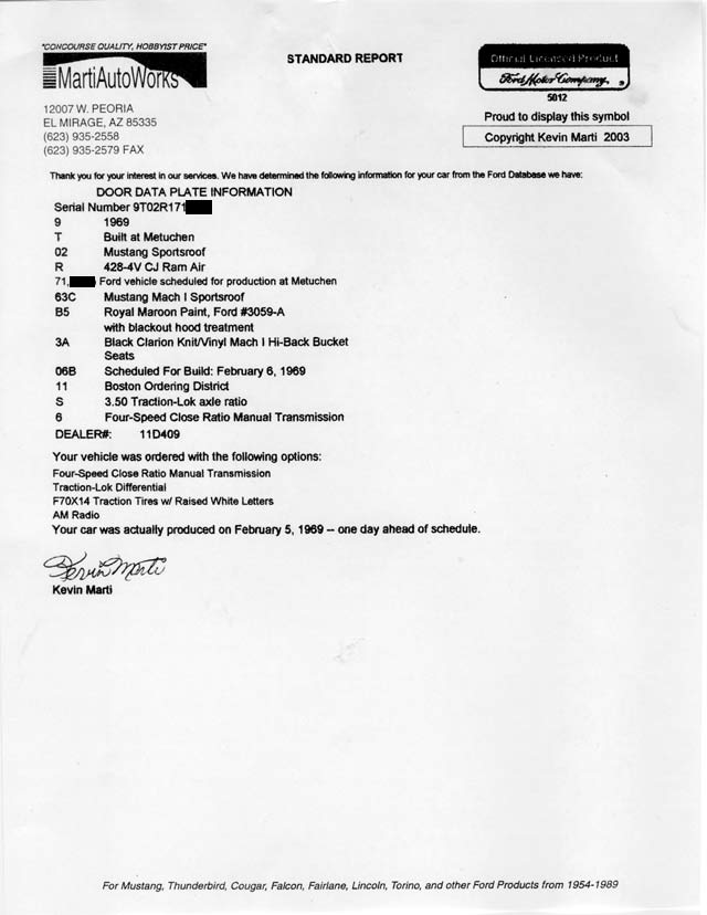 Mach 1 Cobra Jet VIN# 9T02R171xxx